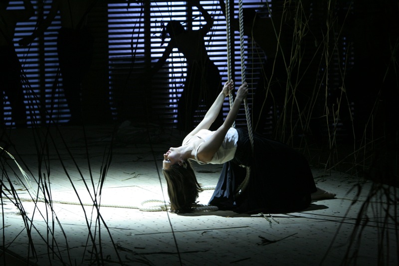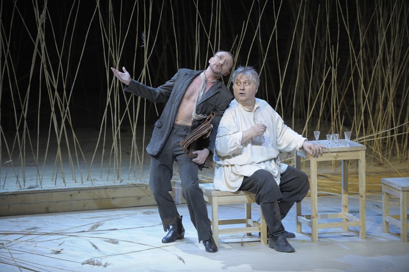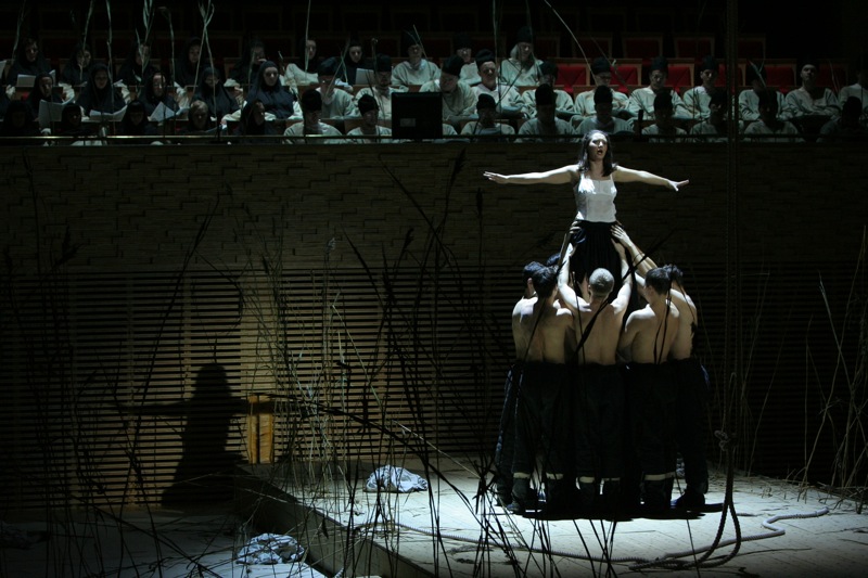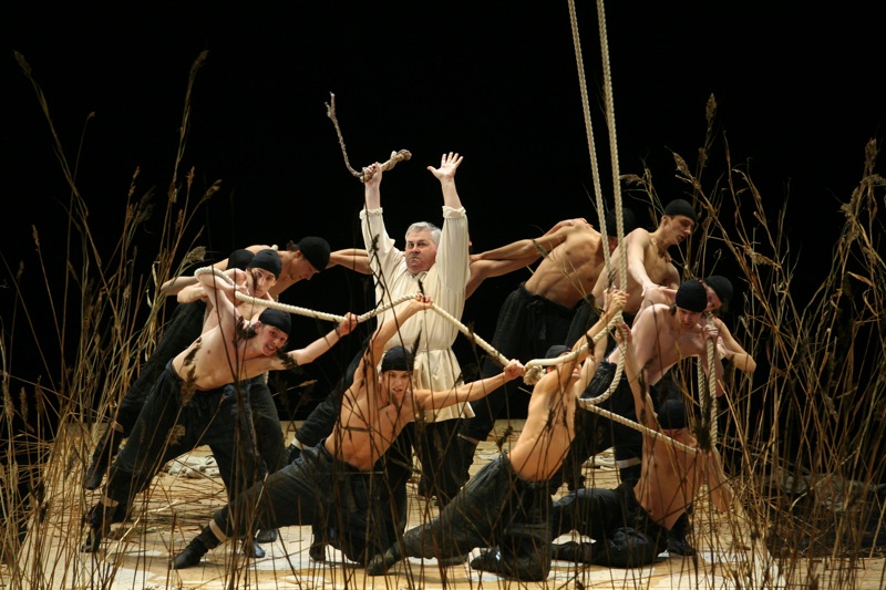 Своеобразие замысла Щедрина, видевшего свое детище прежде всего на концертной эстраде, вселяло заранее некоторое недоверие в возможности современного режиссерского театра: не испортили бы! Ведь испохабить "Аиду" или "Китеж" не страшно – всегда есть возможность послушать или посмотреть классические интерпретации (пусть и не всегда вживую). А вот испортить впечатление от нового произведения – очень просто. И вполне возможно, что это будет уже навсегда. К счастью для постановки "Странника" пригласили вовсе не эпатажного, "модного" деятеля, но именно режиссера музыкального театра Алексея Степанюка. И это дает свои результаты – скупая, но очень точная сценография: сухой, болотистой травой, по которой, словно по китежской пустыни, скитаются герои оперы, усажена вся сцена. Скупая, но опять же очень точная режиссура: певцам, не мешают петь, не обременяя их неудобными и сомнительными в эстетическом плане мизансценами. Значительна роль мужского миманса, предстающего то Валаамскими монахами, то цыганским табором, то татарами, десятилетие в плену у которых провел главный герой. А вот хор выведен за рамки действия, обряжен в монашеские рясы, расположен в оркестровой яме – подобно хору-комментатору античных трагедий. Степанюк во всем идет от музыки – музыкальное повествование на первом плане, а режиссура не самодавлеет, она всего лишь помощница. Благодаря этому не нарушена ткань произведения, не попрана жанровая самодостаточность оперы. Метод Степанюка (а его работы известны Москве, поскольку именно в его постановках шли мариинские "Пиковая" и "Тристан" на филармонической сцене) идеален для оперного театра: пусть режиссерское решение не поражает, не удивляет и не будоражит; но оно и не корежит первоначальный замысел автора произведения.