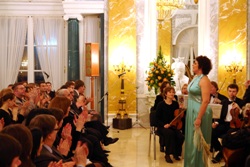 Автору этих строк посчастливилось присутствовать на событии, которое даже по меркам насыщенной музыкальной жизни Северной Пальмиры, можно отнести к разряду далеко не ординарных. Всю гамму впечатлений можно свести в один емкий тезис: в Константиновском дворце обосновался музыкальный салон итальянской оперы, невероятно элитарный по степени своей эксклюзивности, но в то же время абсолютно демократичный с точки зрения непринужденной и по-особому доброжелательной атмосферы. Закономерно, что радушной хозяйкой этого, скажем прямо, необычного для нашего времени оперного салона, его большой душой и открытым сердцем стала Елена Образцова. Наверное, только художникам подобного ранга удается творить настоящие чудеса! Судите сами. Во-первых, привезти в Петербург Фьоренцу Чедолинс, одно из ярчайших имен итальянской оперы. Во-вторых, «выписать» для концерта Маттео Бельтрами, одного из перспективных итальянских дирижеров молодого поколения, для которого нынешний визит в Россию также стал первым. В-третьих, пригласить главного редактора авторитетнейшего миланского журнала «L’Opera», известного музыковеда и музыкального критика Сабино Леночи, выступить в необычной роли ведущего концерта. Что и говорить, последняя персоналия придала обсуждаемому событию еще большую интернациональную значимость.