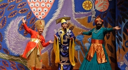 В Театре Сац все-таки не решились дать «Салтана» во всей полноте, без купюр – действие приобрело, бесспорно, большую динамику, но значительные потери по части музыкальных красот несколько разочаровывают. Тем более, что уровень музыкальной работы театра – совсем не детский: капустником и самодеятельностью и не пахло. Режиссер Виктор Рябов и художник Елена Качелаева увидели решение «Салтана» в лубочной эстетике, причем полихромность спектакля побивает все рекорды: буйство красок, сопоставление совершенно на первый взгляд не сочетающихся цветов создает на сцене четкое ощущение колористического винегрета. Однако, если вслушаться в музыку, то многоцветье не кажется столь уж радикальным и безосновательным: «Салтан», действительно, очень цветная, очень пёстрая, радужная опера. К удачам режиссера можно отнести умение распорядиться пространством: сцена Театра Сац не так уж велика, создать здесь настоящую перспективу, например, в сцене с корабельщиками, или в финале оперы (прибытие Салтана на остров Буян) не так-то просто, однако Рябову удается избежать суеты, толкучки, тесноты. Наиболее удачны в этом плане выглядят финалы обоих действий (в Театре Сац «Салтан» идет в двухактной версии). Не совсем гармоничным выглядит решение образа Царевны-Лебеди. Режиссер не доверяет пластике оперной артистки, исполняющей эту партию, поэтому образ дублирован балетными эпизодами. Сам по себе танец поставлен неплохо, однако эта «двойственность» смотрится несколько искусственно, натянуто, и совершенно непонятно для доверчивых ребятишек в зале. А вот хореографические эпизоды с белкой и шмелем заслуживают всяческих похвал – сама музыка Римского-Корсакова дает здесь огромный карт-бланш постановщикам, который те используют весьма профессионально. Спектакль Театра Сац абсолютно иллюстративен. Но это совершенно оправданно и по причине специфической аудитории, и еще и потому, что сама природа «Салтана» совершенно противится всяческим режиссерским «наворотам». Однако «сказочности» в сказочной опере могло бы быть и больше – современный театр располагает немалыми возможностями для воплощения всевозможных спецэффектов, к тому же в зале – благодарная публика, которая искренне верит в чудо и ждет его на сцене, здесь нет скептиков и циников, способных осмеять любые метаморфозы и трансформации. К сожалению, у постановщиков не хватает фантазии сделать спектакль более занимательным с этой точки зрения, и все ограничивается весьма дежурным набором «чудес».
