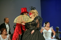 Честное слово, меня не раз на протяжении вечера охватывало мучительное желание побыстрее покинуть театр и более не быть свидетелем этого балагана, и только соображения профессиональной необходимости удержали меня в зале до финала. В чем же причина откровенной неудачи «Новой оперы» в новом для нее жанре? Думается, прежде всего в том, что голландский режиссер Михил Дейкема явно перестарался, перегрузив постановку неимоверным количеством нелепых шуток и эксцентричных выходок главных и второстепенных героев.