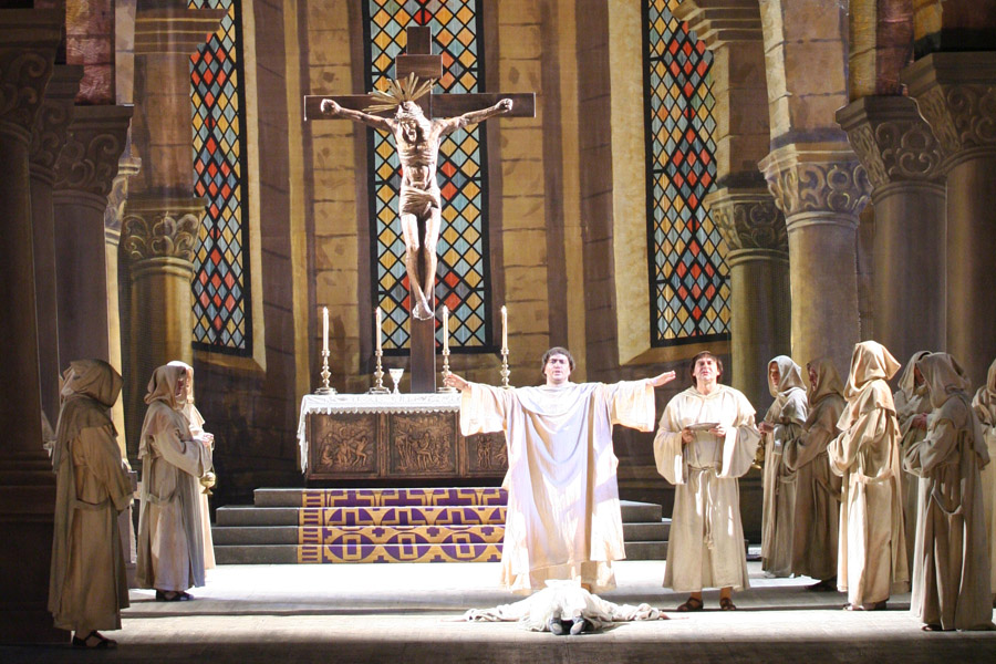 Лучшие силы театра отправляются на гастроли за границу – и потому, для «обслуживания» «Русалки» (а премьера прошла в рамках фестиваля «Звёзды белых ночей»), был приглашён солист Петербург-концерта тенор Николай Емцов (Принц). Естественно, возникает вопрос: а кому нужен такой фестиваль по «остаточному принципу», представляющий публике, вопреки своему названию, даже не «звёзд», но порой откровенно слабых музыкантов? По сложившейся традиции, художественное руководство Мариинки оставляет этот вопрос без ответа. Ну, а меломаны, в свою очередь, «голосуют ногами»: невзирая на более чем приемлемые цены на билеты, на «Русалке», поставленной для «галочки», концертный зал театра не заполнился даже наполовину. Сложилось впечатление, что опус Дворжака мелькнул в афише Мариинки лишь потому, что Михайловский театр анонсировал премьеру «Русалки» в следующем сезоне! Однако вернёмся к «Силе судьбы». Эта опера, поставленная лучшими артистами петербургской Итальянской оперы, впервые увидела свет на берегах Невы в ноябре 1862 года. Однако перфекциониста и «самоеда» Верди первая редакция оперы не устроила. Для премьеры в Ла Скала, которая состоялась 27 февраля 1869 года, либреттист Антонио Гисланцони по просьбе композитора переработал текст оперы, а сам Верди изрядно потрудился над музыкой: прелюдию он заменил «полноразмерной» увертюрой, значительно переработал финалы и материал третьего и четвёртого актов. Как правило, при постановке «Силы судьбы» пользуются именно «миланской» версией: в ней опера стала на полчаса короче, а из партии Альваро исчезли наиболее «кровавые», весьма трудные для тенора куски. Тем не менее, единственную оперу Верди, написанную специально для Петербурга по заказу дирекции Императорских театров, Мариинский театр просто обязан держать в репертуаре в оригинальной редакции.