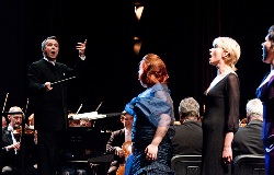 Юбилей решено праздновать с размахом, поэтому для первой акции, которая, по сути, открыла концертный сезон в столице, была выбрана Новая сцена еще не возобновившего работу после летнего перерыва Большого театра: именно здесь РНО «прописался» на целую неделю с тем, чтобы представить московским слушателям весьма разнообразную программу. Ее лейтмотивом Плетнев выбрал творчество своего кумира – великого Чайковского, хотя не только его произведения звучат на фестивале. Сцена первого российского театра обязывала ко многому, в том числе и к подбору репертуара: совершенно очевидно, что без оперной составляющей обойтись было просто невозможно. Наиболее очевидным шагом тут казалось исполнение «Пиковой дамы», тем более, что именно Плетнев поставил новую версию этого шедевра в Большом два года назад. Однако маэстро пошел другим путем, предложив оперу кумира самого Чайковского – моцартовскую «Волшебную флейту». Его не смутило, что в репертуаре театра есть собственный спектакль с таким названием – Плетнев сделал концертную версию, позвав международный состав исполнителей и почти никого из Большого. Ажиотаж был страшный, будто сам театр «Ла Скала» вновь пожаловал в Москву, - РНО в столице любят, у него есть свой слушатель, способный заполнить не только филиал ГАБТа.