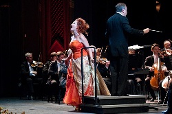 Симона Кермес – главная звезда проекта и главное разочарование описываемого вечера. Щедрая на овации заграничным артистам московская публика, однажды полюбив, приучила немецкую гостью к сногсшибательному приему – и свою порцию аплодисментов, заметно большую, чем кто-либо еще, включая виновников торжества (Плетнева и РНО), она получила и в этот раз. Однако это была скорее дань прежним успехам, ибо Царица ночи в исполнении Кермес – наверно худшее, что она до сих пор показывала в Москве. Впервые появившись в «Дон Жуане» несколько лет назад, Кермес привлекла к себе внимание виртуозным вокалом и яркой внешностью, музыкальностью, и бесспорно, что в том проекте маэстро Курентзиса она была лучшей, хотя до уровня настоящей звезды все-таки не дотягивала, что косвенно подтверждают и ее сегодняшние ангажементы: Кёльн, Людвигсбург, Дюссельдорф, Копенгаген, театр «Ан дер Вин» в Вене – словом, сцены не первого ряда. Январское ее выступление в Москве в раритеной гайдновской «Душе философа» было несомненно удачей, хотя некоторые моменты вокала смущали и тогда. На сей раз то ли партия более хрестоматийная, до боли знакомая, то ли певица была не в лучшей форме, но все ее потуги изобразить эдакую лихую примадонну с повадками экстравагантной светской львицы разбились о мяукающие, почти эстрадные (в стиле Анны Герман) мецца-воче, неяркий, лишенный демонизма (уместного для повелительницы тьмы), без особо запоминающегося тембрового окраса и слишком открытый звук, и непростительные ошибки в колоратурных пассажах. Вообще было очевидно, что колоратурная техника дается певице с большим трудом – пела она «всем телом», устроив на авансцене некое подобие весьма комично смотревшихся буги-вуги. Кто-то скажет – ну что тут такого, разве это криминал? Был бы результат, а метода у всех своя! В том-то и дело, что например на Чечилию Бартоли смотреть во время исполнения ею арий из опер Вивальди тоже не слишком эстетически приятное удовольствие, однако звуковой результат налицо. А вот аэробика Кермес не только не дала феноменального результата, но вообще поставила под сомнения статус певицы, в каком она сумела ранее утвердиться в Москве. Особенно неудачной вышла вторая, более сложная ария, хотя и в первой было понятно, что праздника вокаломанам на этот раз устроить не получится.