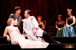 Испанский тенор Хосе Мануэль Запата в роли Дорвиля был бы, в общем-то, не плох, если бы не его чрезмерно форсированная, тяжелая звуковая эмиссия, не позволившая в полной мере насладиться и его концертным выступлением, программу которого составила весьма интересная подборка камерной национальной песенной лирики. Я до сих пор храню светлое впечатление, которое произвел на меня этот певец в фестивальных работах прошлых лет (Альберто в «Газете», Адельберто в «Аделаиде Бургундской» и Яго в «Отелло»), однако этот сезон в Пезаро – явно не его. Напротив, Ольга Перетятько (москвичи слышали ее в 2008 на европейских Днях оперы в театре Станиславского и Немировича-Данченко – прим. главного редактора), два года назад профессионально спевшая вместе с ним Дездемону в «Отелло», нисколько не растеряла свои творческие козыри и в комическом репертуаре.