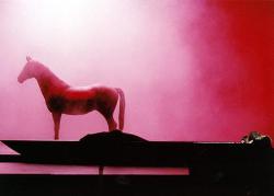 Постановка заключительной оперы «Кольца» осуществлена той же командой – режиссером Свеном Эриком Бехтельфом и сценографом Рольфом Глиттенбергом. И она столь же уныла и незатейлива, как и «Зигфрид». На все три акта через сцену от кулисы до кулисы протянута тяжеловесная конструкция, чем-то напоминающая пешеходные переходы, перекинутые через МКАД. Под этим сооружением и разворачивается все действие. В первом акте пространство густо усажено карликовыми елками – синтетическими, новогодними, ибо они могут менять цвет и светиться. Во втором акте выстроена перспектива из вертикально стоящих плит, и вас не покидает ощущение, что вы очутились на какой-то, не самой красивой станции московского метрополитена. В третьем действии сцена и вовсе пуста, лишь несколько лодок, между которыми ползают норны, видимо, олицетворяют собой Рейн. Именно в одной из них в финале оперы лежит бездыханный Зигфрид.