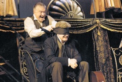 Собственно, постановка и называется не «Моцарт и Сальери» (хотя правильнее было бы «Сальери и Моцарт» - ведь у Пушкина главным героем является Сальери, на 2/3 его текста приходится 1/3 слов Моцарта), а ее озаглавили «Директор театра» - так называлась одна из провальных опер самого Моцарта. Ее не раз цитируют по ходу спектакля, как и, напротив, восторженно принятую современниками оперу Сальери «Тарар», либретто которой зачитывают между пушкинскими строками полностью.