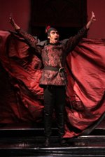 Не стал исключением и центр Вишневской. Руслан Розыев в роли Князя Тьмы неизменно срывал аплодисменты, даже в драматических сценах, что нечасто бывает на оперных представлениях. Несмотря на волнение артистов, которое проявлялось в некоторой сценической скованности и зажатости голоса в тесситурно высоких местах, в целом все вполне успешно справились с технически ох, как не простыми, вокальными партиями. Зал тепло принимал и Константина Бржинского (Валентин), и Надежду Карязину (Зибель), ну, и, конечно же, главных героев, Фауста и Маргариту в исполнении Василия Гафнера и Натальи Калиты. А если учесть, что опера шла на языке оригинала, то есть на французском (постановка явно с прицелом на европейские гастроли), то проделанная работа заслуживает еще большего уважения. Отдельного упоминания заслуживают хоровые и ансамблевые сцены, в которых, по традиции, заняты все студенты центра. В такие моменты волнение уходило – ну как же, ты же в команде,- а, если учесть, что каждый участник хора – полноценный солист, с соответствующими вокальными данными, то красота и мощь звучания многократно усиливалась. Я давно заметил - это характерно для всех хоровых сцен в театре Вишневской. В «Фаусте» же впечатление от хора усиливалось еще и необычным его расположением – он то звучит из оркестровой ямы, то сверху, то из-за сцены, усиливая художественное восприятие. Наградой артистам послужили овации зала, аплодировавшего как исполнителям, так и самой Вишневской, царственно покачивавшей головой, стоя в вип-ложе. Судя по ее облику, Галина Павловна осталась довольна результатом – а это для ее студентов самая высокая оценка.