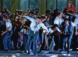 Большой бросок. В отличие от Зальцбурга и Граца, где премьерные спектакли произвели на публику двойственное впечатление, в Тирольском государственном театре, где уже много лет работает и служит гарантом успеха Бригитта Фасбендер, начало сезона удалось. Был сделан очередной «большой бросок». Фасбендер создала великолепный ансамбль. Она знает, как надо ставить оперы, чтобы действие было интересным, высоким в музыкальном и художественном плане. Так это произошло и в «Троянцах» Гектора Берлиоза, в одном из центральный произведений французской оперы 19-го века. Одни размеры оперы уже заставляют потрудиться над этим произведением любой оперный театр. В первой части на сцене стоят плотно прижавшись друг к другу черные стены, с небольшими просветами синего неба, стены символизируют опасность, угрожающую Трое. Во второй части нельзя было придумать большей противоположности: вместо черных стен и замкнутого пространства мы видим широкий пляж на фоне голубого неба и моря. На пляже одетые в современные шикарные одежды люди, и среди них Дидона, женщина-политик, произносящая речи и раздающая ордена. Мишель Бридт (мы недавно встречались с ней: в венской постановке «Ариадны на Наксосе» - прим. ред.) спела эту партию очень «стильно», с прекрасной фразировкой. Дженифер Шаманди была очень экспрессивна в партии Кассандры, Бернд Валентин пел прекрасным голосом партию Хореба, Лизианна Тремблэй была прекрасной Анной. Так же стоит отметить хорошую игру оркестра, который справился с этой весьма непростой партитурой.