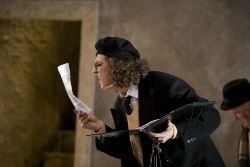 В тоже время в спектакле маловато гэгов, повод которым дают хитросплетения сюжета (путаница с переодеванием учителя музыки, передача записок, «пьяный» солдат и др.). Если не считать манипуляций с гранатой (довольно грубоватых) и разрушения стенки – в активе у авторов не так уж и много сюрпризов для публики. Не считать же таковыми уже ставшую сомнительной традицию выпускать на сцену детей, чтобы спровоцировать «умиление» зала (это очень назойливо проявилось еще в «Мадам Баттерфляй», где роль сына Чио-Чио-сан была выпячена сверх всякой меры).