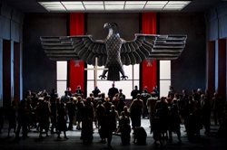 На страницах программки публике было услужливо сообщено, что события оперы происходят в 30-е годы XX века в условной европейской стране. Однако четкая и намеренно подчеркнутая атрибутика немецкого орла безошибочно причисляет эту зловещую стальную птицу к отряду «Deutschland» и не оставляет никаких сомнений, что мы в Германии, а значит, тема холокоста, еврейских гетто, газовых камер и ужасов Треблинки ожила в этой постановке самым изощренно закрученным образом. Безусловно, забывать об этом нельзя, но ведь эта опера, глубоко романтическая по своей сути, вовсе не об этом! Хитросплетения ее либретто, принадлежащего перу Эжена Скриба, вполне достойны «Трубадура» Верди – Каммарано! Драматическая коллизия «Жидовки», основанная на извечной борьбе чувства и долга, имеет лишь романтико-религиозную подоплеку и не несет на себе никаких политических аллюзий: для первой половины XIX века она является одним из гениальных воплощений изысканного помпезно-исторического стиля большой французской оперы, музыкальным камертоном именно той эпохи, когда она была создана…