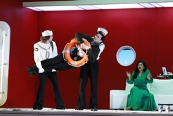 Желали ли того создатели или нет, но спектакль получился все-таки очень русский по уровню своей разгульности, бесшабашности и сентиментальности, не только и не столько в момент, когда с выходом князя Орловского в оркестре звучит очевидно русский мотив (он как раз звучит так, как «русское» слышат именно иностранцы), а вообще весь целиком. Только если в «советской» версии торжествовала мораль, и добродетель побеждала порок, то в «капиталистической» на самом деле все не так просто, и дело даже не в количестве нижнего белья, в прямом и переносном смысле перетрясаемого разными персонажами на сцене. Фальк, которого режиссер (следуя, вероятно, стереотипу «Вена – родина симфонии и психоанализа») произвел в психоаналитики, как и в оригинальной концепции, придумывает и успешно исполняет грандиозную месть за то, что легкомысленный Айзенштайн вынудил его прошествовать по утренней Вене в костюме Бэтмена, то есть Летучей мыши. Розалинда не только разоблачает неверного мужа, приударившего за ней же самой, спрятавшей лицо под маской, но и, в отличие от версии отечественного «разлива», удачно скрывает свою собственную интрижку. Победы морали нет, жене просто повезло, что попалась не она, а муж, поэтому все тут же с легкостью списали на ударившее в голову шампанское. Ну а пароход, получив пробоину не от айсберга, а от раскатанного разгулявшимися гостями рояля, конечно, тонет, но потом так же и всплывает на бис.