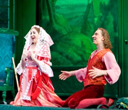 И еще одна номинантка - Надежда Бабинцева (Керубино) - реализовала свою партию с немыслимой отдачей и энтузиазмом. В ее интерпретации ангелочек-херувимчик, залюбленный женщинами, предстает перед нами реже, а вот горячий испано-итальянский мальчишка-сорванец - постоянно. Эмоции захлестывали настолько, что некоторые вполне «звучащие» по партитуре ноты певица переводила практически на речитатив, а предписанный речитатив – на энергичный театральный шепот. Драматическому воплощению это, конечно, шло на пользу, но поначалу заставило чуть усомниться в вокальном благополучии артистки, и как вскоре выяснилось, совершенно напрасно. Особенно удалась вторая ария «Voi, che sapete», где в полной мере раскрылся голос певицы, густой и насыщенный по тембру, но в то же время не лишенный подвижности и гибкости. Что же касается актерского драйва, то тут ей равных на сцене не было. Опасная игра с переодеванием пажа в женское платье – своего рода тест на двойное перевоплощение, и в ней исполнительница смогла показать на сцене именно мальчика, переодетого в девочку (а не зрелую тетушку, непонятно что изображающую, как, увы, в немалом количестве других «Свадеб»).