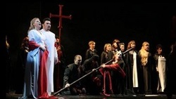 С первых тактов длиннющего и прекраснейшего вступления, когда нежно-инфернальные скрипки разлили по красивому в стиле позднесталинского ампира залу Челябинской оперы свои дивные неспешные созвучия, стало очевидно, что в тот вечер публику, попотчуют настоящим музицированием – и прогноз вполне оправдался: то было полное погружение в настоящую вагнеровскую вселенную звуков. Челябинский «Лоэнгрин» - на удивленье гармоничный спектакль по всем своим компонентам. И это тем неожиданнее, что его создание естественным образом натолкнулось на огромные трудности, как объективного, так и субъективного характера. Первое – это вопросы стилистики, отсутствие вагнеровских традиций и вообще опыта работы с подобным материалом почти у всех исполнителей, начиная с дирижера-инициатора. Второе – финансовые проблемы коллектива, который является субъектом не федерального, а областного подчинения, по причине чего его бюджет, прямо скажем, не страдает от профицита. И, тем не менее, авторам спектакля удалось почти невозможное – создать вполне достойное, законченное и уравновешенное по всем компонентам произведение.