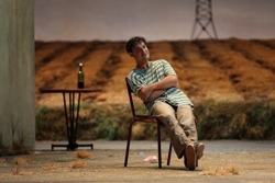 Спектакль Пелли незамысловат и не имеет особых претензий, но скроен очень ловко, без «мертвых точек», и поэтому смотрится на одном дыхании и не раз вызывает улыбку удовольствия. Как ныне часто принято, либретто Романи «перелицовано», действие оперы перенесено в 1950-е годы. Костюмы персонажей сразу отсылают к эстетике фильмов, на которых вздыхало и пожимало друг другу ручки поколение, родившееся в конце тридцатых — начале сороковых годов, типа «Дней любви» с Мариной Влади и Марчелло Мастроянни. Декорации Шантал Тома очень просты: на сцене установлена пирамида из снопов сена, по которой артисты, надо отдать им должное, ходят, а чаще карабкаются с большой сноровкой. Где-то на середине пути к вершине «пирамиды» кокетка Адина воткнула зонтик, дабы солнце не повредило нежной коже «окультуренной» собственницы земельных участков, и с очевидным намерением привлечь внимание представителей мужского пола, красит ноготки; неподалеку от нее примостился добренький дурачок Неморино; именно на вершине (а где же еще?) появится неотразимый Белькоре, который без всякого труда спустится вниз... Во втором действии «пирамида» смещается к правым кулисам, чтобы высвободить пространство, необходимое для свадебного праздника. «Эстрада», на которой восседают неудавшиеся супруги, очень напоминает импровизированные сценические площадки, воздвигнутые по случаю деревенских праздников: их время еще не прошло. Так что место действия оперных «Дней любви», прибывших из Парижа и Лондона, не слишком отлично от памятного многим советского колхоза...