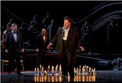 Я впервые услышал выдающегося немецкого баритона Кристиана Герхайера, исполняющего Вольфрама, во Франкфурте в феврале 2007 года — в модной, но довольно спорной постановке Веры Немировой, которая изображала конкурс певцов как эпизод из «Икс фактора»*, где нежно любящий Вольфрам душил свой возлюбленную Елизавету во время исполнения «Песни вечерней звезде». Сейчас, заслуженно дебютируя в Королевском оперном театре, интерпретация Герхайера прошла путь от просто блестящей до выдающейся. Он затмил всех своим удивительно изысканным и безукоризненно контролируемым голосом, теплотой и богатством тембра и линией легато, за которую можно умереть — каждое слово текста было чувственно выражено. Его «O du, mein holder Abendstern» было совершенно. Нечастое присутствие Герхайера на сцене, на самом деле, работает на пользу его герою; у застенчивого и слегка нервозного Вольфрама, видно, нет шансов завоевывать эту девушку, и он действует так же умно, как и поет.