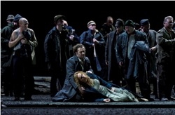 Итак, как бы вы поставили сложнейшую работу вроде этой? Сюжет, разворачивающийся вокруг ключевой фигуры Тангейзера — человека, чей гений разделил его с обществом; человека, колеблющегося между чистой духовной любовью целомудренной Елизаветы и нечестивыми плотскими удовольствиями развратной Венеры, богини древнеримской мифологии, чье присутствие в этой христианской сказке о духовном искуплении и освобождении слегка удивляет. В трех постановках, которые я лично видел за последние четыре года (включая нынешнюю), авторы спектаклей сильно отклонились от усердного воссоздания духа времени Германии 13 века, поместив действие оперы в настоящее, с разной степенью успеха. Вечная проблема греховности Тангейзера, перенесенная в современную Западную Европу, где таблоиды постоянно пестрят сексуальными и наркотическими скандалами с участием известных певцов, политиков и футболистов, лишается своего шокирующего воздействия. Наверное, поэтому для постановки Элбери выбрал декорации послевоенной восточноевропейской страны (фотографии в программке демонстрируют Боснию, Молдавию, Румынию и Чечню — выбирай, что хочешь!), где придерживаются более традиционных ценностей, а общественная злость и ожесточение в отношении Тангейзера выглядит более правдоподобной.