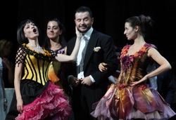 Юлиан Коватчев во главе оркестра Арена ди Верона помузицировал от души: видно, нарядная партитура Легара нравилась ему. Отсюда и элегантность, и точность, и гибкость! Жаль только, что порой оркестр звучал слишком громко, и жидкие голоса второй влюбленной пары потонули в оркестровом море.