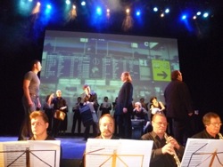 Понятно, что из всего многообразия авторских редакций «Ациса и Галатеи» экспериментально-камерный театр «Северная Венеция», в силу абсолютно прозрачных объективных причин, сделал закономерно единственный, то есть оптимальный для себя выбор, остановив его на первоначальной камерной версии для четырех солистов и хора. Но вы, конечно же, спросите, для чего был затеян весь этот увлекательный исторический экскурс, казалось бы, не имеющий прицельно прямого отношения к обсуждаемой премьере? Да просто потому, что единственная цель его – провести сопоставительную параллель этакого обобщенно-«философского» свойства. Если Гендель на протяжении долгого периода явно не со скуки занимался переработкой и созданием все новых и новых музыкальных редакций своей «маленькой оперы» «Ацис и Галатея», то, кто знает, возможно, и тенденция к столь скорому постановочному – не музыкально-редакционному – обновлению спектакля для постоянно экспериментирующей труппы также является закономерной, а не случайной… Итак, театр с самого начала выбрал курс на современное прочтение этого мифологического сюжета и сразу же в полный голос заявил об этом. Вы скажете, многие театры выбирают такой курс, что тут особенного! Ничего, конечно, однако поступая так и зачастую показывая на сцене то, что здравым рассудком постичь практически невозможно, большинство театров в своих программах приводят обычно оригинальные изложения сюжетов (либо полные оригинальные либретто опер). А о том «интеллектуально прогрессивном», что привнесено постановщиками и является «солью всего спектакля», обычно узнаёшь либо из скупого режиссерского слова, либо из интервью, что помещаются в буклетах… Либо вообще не узнаёшь ниоткуда, а на спектакле только и занимаешься тем, что постоянно разгадываешь «постановочные ребусы» режиссера.