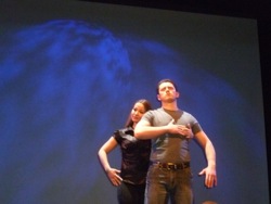 Однако если бы все было так легко и просто! Москва увидела «Ациса и Галатею», но увидела совсем другой спектакль, ибо постановка в очередной раз сменила режиссера. Думается, сей шаг был неизбежен, ведь очевидно, что если на одну чашу весов поместить реального профессионального режиссера, подхватившего эту постановку «на лету», а на другую – «виртуальную» экспликацию спектакля, четко и детально проработанную, но оставленную ее идеологом лишь на бумаге, то первое, в силу объективных причин, однозначно перевешивает второе. Однако именно второе, пройдя извилистым, тернистым путем, 20 июля 2010 года обрело в Петербурге «плоть и кровь» российской премьеры лишь благодаря энтузиазму, известной доле организационного риска и личной инициативе художественного руководителя театра «Северная Венеция» Людмилы Модиной. Теперь же, когда решение «сверхзадачи» начального этапа работы стало реально свершившимся фактом и выполнило свою основополагающую миссию, дальнейшее прокатное развитие проекта вступило в новую творческую фазу. Однако не следует думать, что новый постановщик, молодой режиссер из Литвы Ричардас Пинтверис, в настоящее время постоянно работающий в Петербурге, пренебрег оригинальной концепцией Фредерика Клаво. Она сохранена, просто реализована в еще более аскетичном, чем это было ранее, контексте мизансцен, пластики и сценографии. Итак, Ричардас Пинтверис предстал и режиссером, и сценографом, и художником по костюмам в одном лице. Он выступил в постановочном тандеме с балетмейстером Елизаветой Меньшиковой. Особо отметим, что неоценимая организационная поддержка обсуждаемому проекту «Северной Венеции» была оказана со стороны народного художника России, вице-президента РАХ Анатолия Левитина, входящего в состав Попечительского совета театра. Образом-символом новой версии спектакля, его талисманом, стала одна из работ этого художника под названием «Портрет девушки», ибо Ричардасу Пинтверису удалось органично вплести эту работу в канву собственного режиссерского замысла.