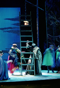 Зрителям этого вечера повезло, так как главную роль пел известный итальянский баритон Роберто Фронтали. Это настоящий вердиевский певец, поющий в лучших театрах Европы и США. У него блестящий голос красивого тембра, ровно звучащий во всем диапазоне и слушать Фронтали - это наслаждение. А какой страстный певец – он очень просто сыграл любовь к Джильде, своей единственной дочери, и в то же время был ехидным и насмешливым в сценах с герцогом. Всё это было естественно - настоящий природный итальянский темперамент! Как нам кажется, великий реформатор сцены К.С. был бы доволен и сказал свое сакраментальное: «Верю!». Дирижёр подчеркивал в спектакле важнейшую тему - проклятие графа Монтероне, которая звучала зловеще, и голос Фронтали как набат призывал к покаянию.