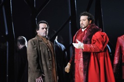 Невероятно хорош и Генрих – итальянский бас Карло Коломбара. Эта партия, на первый взгляд, как будто бы и не очень сложна вокально, но зиждущаяся на постоянном драматизме, она требует от певца большой эмоциональной отдачи. Несмотря на то, что партия Генриха «очень певучая», в ней нет ни одной развернутой арии, зато много музыкальных реплик, ариозных речитативов и участия в изысканных музыкальных ансамблях. И Карло Коломбара великолепно проводит свою партию с присущим ему истинно итальянским brio. И, наконец, Хосе Брос в партии Лорда Перси, персонажа, ставшего невольным орудием в осуществлении и оправдании кровавых планов Генриха. К фигуре тенора-премьера в любой итальянской опере предъявляется повышенное и наиболее пристрастное внимание, а уж в опере бельканто – и подавно. Партия Лорда Перси, состоящая из дивных по красоте фрагментов ариозного плана, включенных в множество ансамблей этой оперы, а также из «предфинальной» развернутой арии со стреттой в высокой тесситуре, оказалась Хосе Бросу вполне по плечу, хотя из-за спинтовости фактуры его голоса всё время создавалось впечатление, что он постоянно поет на пределе, однако нигде, ни в одном месте его наисложнейшей партии, стилистически изысканной и подчеркнуто благородной, он ни разу не вышел за рамки стиля, ни разу не сорвался, ни разу, что называется, «не дал петуха»: ни одна спетая им нота не доставила дискомфорта для слуха. Одним словом: весьма достойный певец, весьма достойное и профессионально грамотное исполнение.