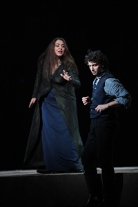 «Тоска» без настоящей Тоски? И такое случается. Оксана Дыка очень красивая молодая женщина со сверкающими, как звезды, огромными глазами и совершенно роскошными волосами до талии. Ее статуарная внешность и высокий рост напоминают Юнону или Минерву. Но молодая артистка все еще находится в стадии формирования и совершенно не готова к роли Тоски. Неумение носить длинное платье – певица то и дело одергивала небольшой шлейф, особенно комическое впечатление это производило в сцене пыток, она невольно делала это, даже прислушиваясь к стонам любимого Марио; неуклюжая походка, часто сияющее и легкомысленное выражение на лице. Знаменитая певица времен наполеоновских войн казалась ученицей старших классов, а не обладающей неотразимой статью, гордой, сжигаемой ревностью женщиной. У Оксаны Дыки светлый, хорошо летящий в зал голос. «Vissi d’arte» она начала интонационно неточно, но в целом священная ария прозвучала достойно (публика не удостоила ее аплодисментов). Если укрепить центральный регистр, петь более сфокусированным звуком и работать над выразительностью слова и актерской стороной роли, украинская певица может стать в перспективе неплохой Тоской. А пока…