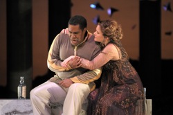 Исполнительница партии Деяниры, еще одна английская певица Алиса Кут генделевские фиоритуры, даже распевшись ко второму акту, явно не вытягивала, но начало было еще хуже. Не вытягивали свои партии и все без исключения солисты-мужчины, даже тенор Ричард Крофт, хорошо известный своими барочными партиями (партия Гилла – одна из самых известных в его репертуаре), и контртенор Дэвид Дэниэлс, который был очень хорош в Лирик-опере в главных партиях в операх “Орфей и Эвиридика” (сезон 2006-07 годов) и “Юлий Цезарь” (сезон 2007-08 годов). Ну а главная неудача спектакля – исполнитель партии Геркулеса Эрик Оуэнс. Обладая всеми необходимыми внешними данными для роли генерала - огромный рост, могучее телосложение, - бас-баритон из Филадельфии имеет серьезные проблемы с вокальной техникой, голос у него неровный, с проблемами в нижнем регистре. Певец дебютировал в Лирик-опере в партии генерала Лесли в опере Джона Адамса “Атомный доктор” (сезон 2007-08 годов). Интересно, что особый интерес Оуэнс проявляет к малоизвестным операм XX века и современным сочинениям. Так, в этом сезоне главным своим достижением певец считает участие в опере Дьердя Лигети “Великий Мертвиарх” с оркестром Нью-Йоркской филармонии под управлением Алана Гилберта. В апреле запланировано выступление Оуэнса с Чикагским симфоническим оркестром и Риккардо Мути в концертном исполнении “Отелло” Дж.Верди. Послушаем, как справится певец с Верди...