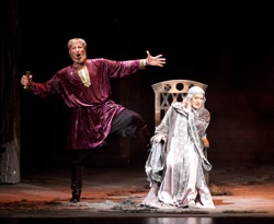 И несколько поблек на фоне такого Князя хан Кончак. Бас у Владимира Кудашева тёмный, но глуховатый, нижний знаковый «булат» прозвучал отменно, а вот фразы среди танцующих невольниц вообще терялись. Что же касается образа – тут мы не увидели ничего нового, вполне традиционный полудикий владыка.