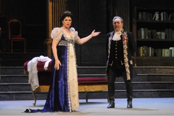 Особенно ждали Мартину Серафин в главной роли, австрийское сопрано, невзирая на ее итальянскую фамилию. Итальянская у Серафин не только фамилия, но и дух: в последнее время она все чаще выступает в ролях героинь итальянской мелодрамы. С первого момента появления на сцене Серафин поражает статью настоящей главной героини и уверенностью в себе. Она поражает и с музыкальной точки зрения: это голос полный и крепкий, с теплым и сияющим центральным регистром. Настоящее драматическое сопрано, слабости которого, - несколько затрудненные и не всегда сфокусированные верхние ноты, что несколько странно ожидать от артистки, столь одаренной с музыкальной точки зрения. Видя драматический темперамент Мартины Серафин, хотелось бы пожелать ей дальнейшей работы над тонкостью фразировки. В любом случае, Серафин в роли Тоски – подлинная властительница сцены.
