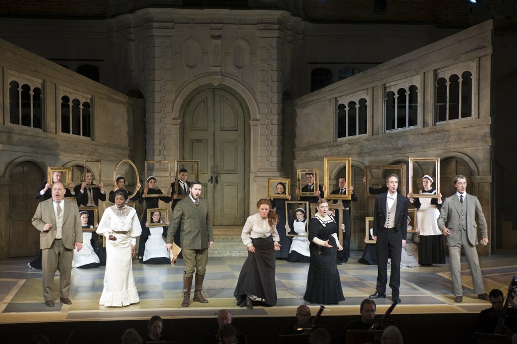 В постановке Лиама Стила и дизайнера Эммы Уии события происходят в Англии 1914 года. В этом летнем театре нет занавеса, и зрителю сразу предстает богатый английский дом - ранним утром, когда хозяева еще нежатся в спальнях, а вымуштрованные английские слуги уже носятся по сцене с ночными горшками, со щетками для одежды, начищают серебро перед тем, как подать завтрак. А также парочка влюбленных слуг успевают прижаться друг к другу и даже обменяться долгим поцелуем.