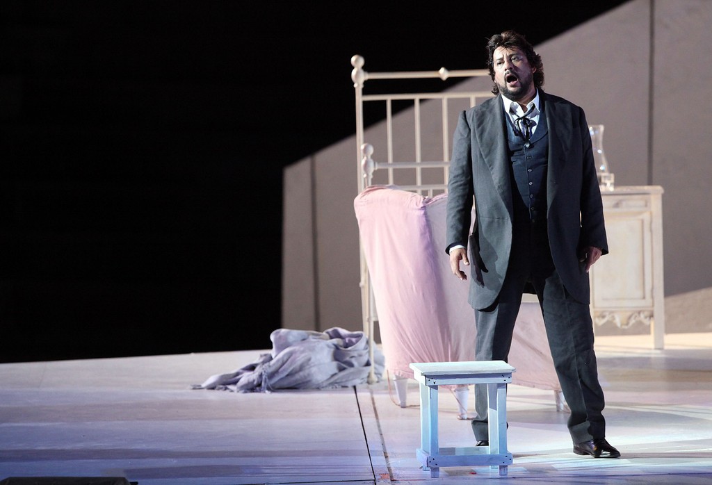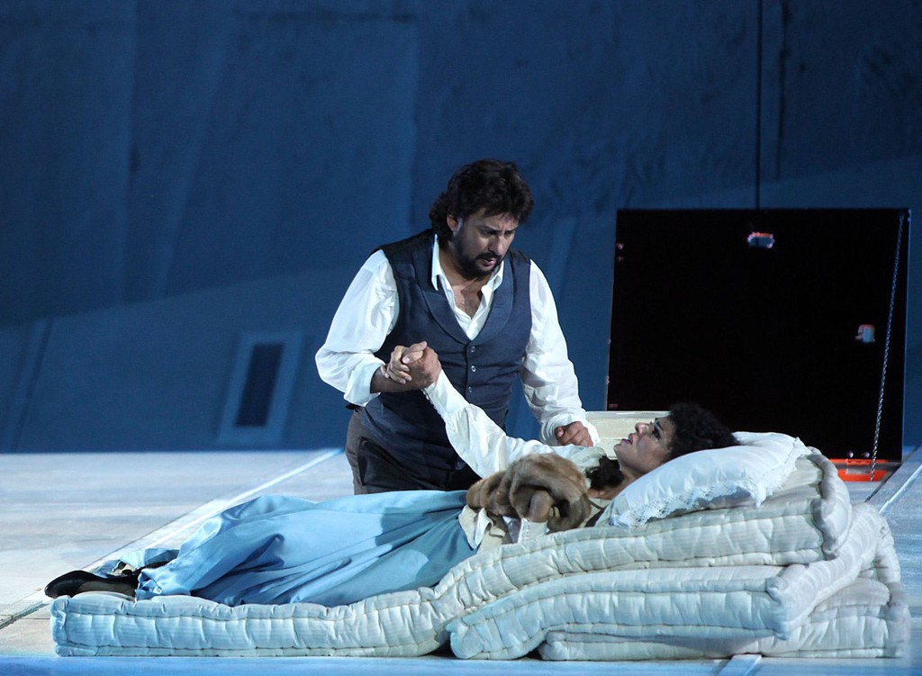 Шесть лет минуло со дня премьеры «Богемы» в Арена ди Верона. В свое время она принесла публике множество удовлетворения и радости: заслуга постановочного тандема Арно Бернар — Уильям Орланди и великолепной пары вокалистов Фьоренца Чедолинс — Марсело Альварес. Редчайший случай, музыкальный и театральный праздник! На стенах висело много ружей, и все они под конец стреляли, да еще попадали в цель. Ныне спектакль вернулся на подмостки древнеримского амфитеатра, и во многом сохранил первоначальные блеск и очарование.