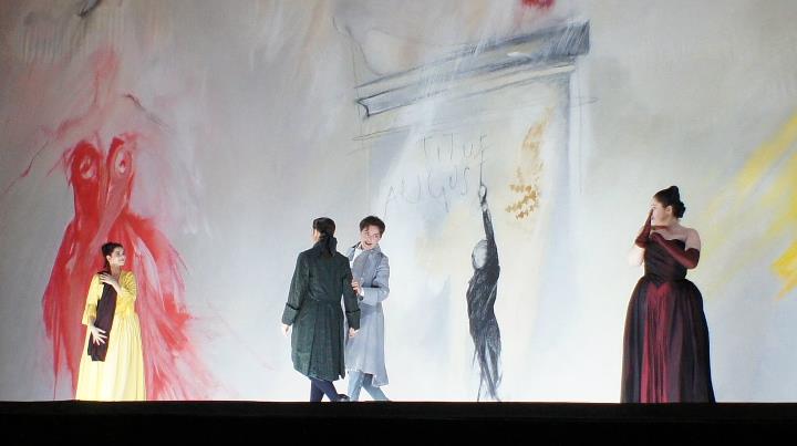 К сожалению, Вилли Деккер не смог или не захотел участвовать в восстановительных репетициях (режиссеры-ассистенты Изабелль Кардэн и Жан-Луи Кабан). Возможно, в этом причина отсутствия в новом спектакле четкого режиссерского жеста, он подменён элементарной разводкой исполнителей в декорациях. Вместо внутреннего наполнения певцы заняты однообразными уходами-возвращениями, оправдывающими длинные арии da capo, и бесконечным жонглированием тремя предметами реквизита: белым плащом – императорской мантией, красными розами – букетом потенциальной невесты Августейшего, и большой картонной короной, которая (почти) всем велика. Потрепавшийся букет роз, буквально навязываемый каждой из избранниц Тита, словно призван напоминать им о том, что они лишь заместят на троне страстную чужеземку в ярком, в цвет букета, платье. Но сам Тит весьма скоро забывает свою Беренику, так же скоро ее забудут и зрители (тем более, что в программке о ней нет ни слова) – ее красное платье и смуглая кожа почти сразу вытесняются из нашей памяти темно-вишневым страстно-женским одеянием Вителлии и ее темпераментом.
