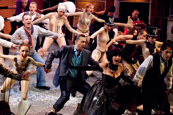 Как же справляются хоть и с ранним, но все-таки Вагнером в московском театре, где все же чаще мы сталкивались с интересной режиссурой, нежели безупречным вокалом? Ощущение сырости, невпетости и несыгранности материала не покидало на протяжении всего вечера. Агрессивный музыкальный язык композитора, с тевтонским маршеобразным громыхание провоцирует, и певцы охотно на это ведутся – что солисты, что хор достаточно крикливы, интонационно и ритмически приблизительны, их немецкий по большей части навевает мысль о самодеятельности. Актерского куража в избытке, а вот музыкальной рафинированности, чистоты музыкально линии – нет почти совсем. И стихией комической оперы это оправдать невозможно: веселье в опере вовсе не отменяет качественный вокал. Хотя этот результат и неудивителен – гастрольный темп, который в последнее время взял «Геликон» (продолжительные туры по России и странам СНГ с «Царицей» Тухманова, совсем недавние гастроли в Эстонии и во Франции), выдержать очень трудно, он – очевидная помеха в качественной подготовке премьер, которых и не было здесь давненько.