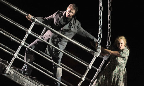 Несмотря на то, что написаны они почти с разницей более чем в сто лет, у меня возникло желание объединить их в одной рецензии. Эти оперы – не с трагическим концом. Я имею в виду, что главные, действующие герои - не погибают. Даже несмотря на то, что Сента должна была бы по оригинальному замыслу броситься со скалы в море, доказав тем самым свою верность Летучему голландцу, а затем и сам корабль-призрак с капитаном, несущем на себе проклятье, вслед за ней канул бы в морской пучине. В постановке же Тима Албери она остается одна, а корабль-призрак продолжает свои скитания. Исчезла трагедия – исчезла изюминка. Как жаль! Романтическая, по идее, опера превращена почти в производственно-любовный роман. Непростительно совершенно!