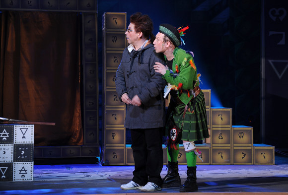 Тем не менее, эти эффекты ни в коем случае не затенили, а скорее обогатили жизнь главных персонажей на сцене. Один из беспроигрышных приемов воздействия на публику — развертывание части действия в самом зрительном зале. При этом, к примеру, Тамино бежит от змея, вокализируя одновременно драматичный по наполнению текст, полный страха и ужаса. Некоторые «прохаживания» героев по залу балансировали с почти цирковой виртуозностью. Вспомним как крадутся по тонкому (и довольно высокому!) бордюру Папагено (Михаил Новоселов) и Памина (Надежда Антюфеева). Папагено при этом имитирует игру на флейте (В. Заржецкий), колокольчиках и еще успевает спеть симпатичный дуэт со своей спутницей. В другом эпизоде трогательная Памина проходит по залу с завязанными глазами и продолжает идти по тонкому краю сцены, вот-вот норовя упасть в оркестр. Затем, выходя на сцену, поет сентиментальную арию мягко и технично. Все, что происходит с актерами в зрительном зале, развертывается практически над головами зрителей; да так, что можно даже ощутить теплоту дыхания артистов. Играя с детской публикой, они как бы говорят: «Посмотрите, всё, что мы делаем,— так просто; когда вы вырастете, то сможете так же красиво петь и двигаться, если захотите». К слову говоря, один из узнаваемых компонентов стиля «Зазеркалья» — это мастерское сочетание вокала и хореографии певцов. Одним из самых ярких номеров оперы стала ария Царицы ночи «Месть, месть!» (В. Романова). В арии, изобилующей юбиляциями и запредельными нотами в третьей октаве, присутствует и эффектный цирковой трюк: певица, стоя на высокой башне, мечет копья в Памину, демонстрируя публике свой хладнокровный характер и злой нрав.