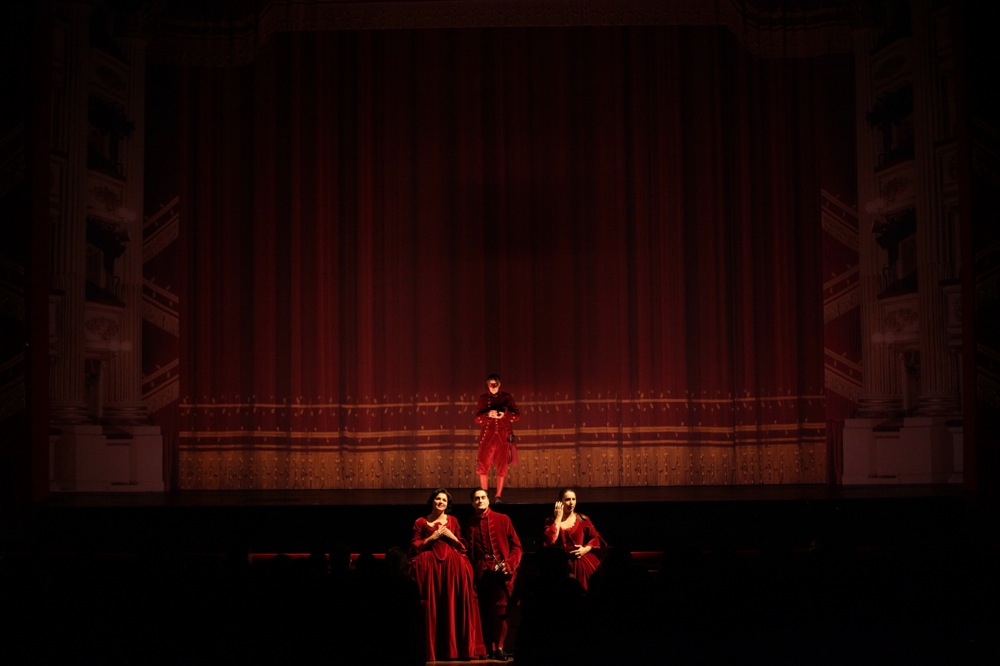 Карсен поставил спектакль, о котором мало что можно сказать. Не бесповоротно плохой, не окончательно провальный, но вяловатый, скучноватый и порядочно бесцветный. Как бесцветна сценография Майкла Ливайна, который не придумал ничего лучше, как воспроизвести интерьер прославленного миланского храма оперы, используя многократно повторяющийся мотив занавеса. Только настоящий занавес яркий и способный вызвать эмоции (ведь «Ла Скала» – это история, престиж, миф), а огромные фотопанели на сцене бледны и невыразительны. Роберт Карсен заявил, что его спектакль – приношение «Ла Скала», так, может быть, «приношение» и состоит в скучном воспроизведении занавеса??