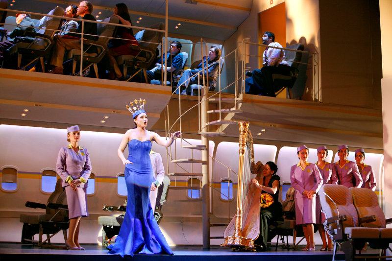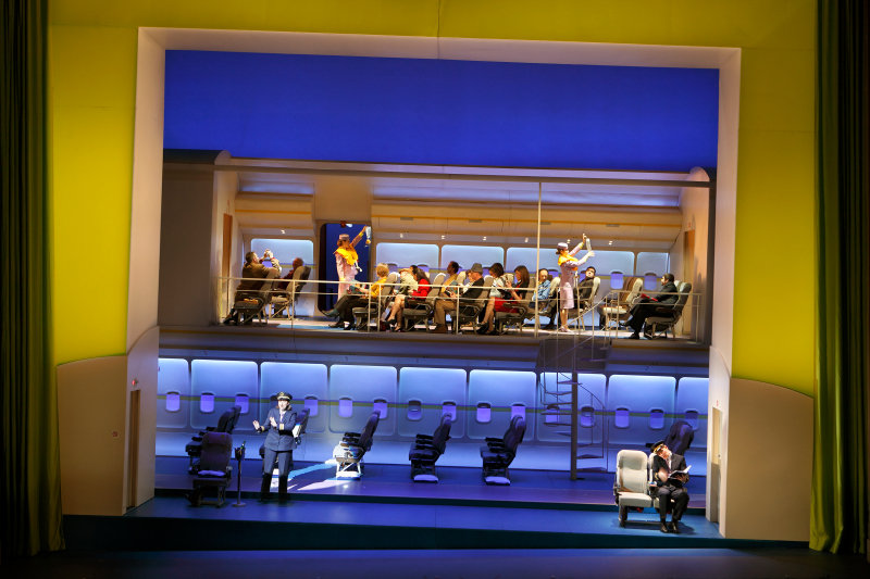 По воле режиссёра действие переносится из гостиницы в аэропорт, где объявлено о задержке рейса. Хор находится в верхнем салоне, то бишь зале ожидания, солисты – внизу.