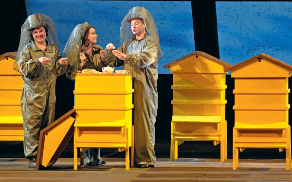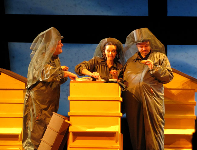 В Москве начались показы оперной программы национального театрального фестиваля «Золотая маска». В этом году оперная афиша форума весьма урожайна: в российской столице покажут целых шесть немосковских спектаклей. Назовём их: «Лючия ди Ламмермур» из Казани (2 апреля), «Богема» от Михайловского театра (4 апреля), «Любовь к трём апельсинам» из Екатеринбурга (11 апреля), «Мадам Баттерфляй» из Астрахани (13 апреля), «Из Петербурга до Миргорода» (диптих из современных одноактных опер по Гоголю) от питерского театра «Зазеркалье» (13 и 14 апреля). Cтоль представительный десант весьма вдохновляет — «Маска» не забывает и оперную свою составляющую, нынешняя афиша куда разнообразней прошлых конкурсных показов. Правда не обошлось и без потерь, видимо, естественных для российских условий: как не щедры спонсоры в лице «Сбербанка» и «Евроцемент-груп», а всё-таки опера — дело чрезвычайно затратное, и привезти всех номинантов на фестиваль не удавалось ещё ни разу. В этом году московская афиша не досчитается двух любопытных постановок — мариинских «Аиды» и «Сна в летнюю ночь».