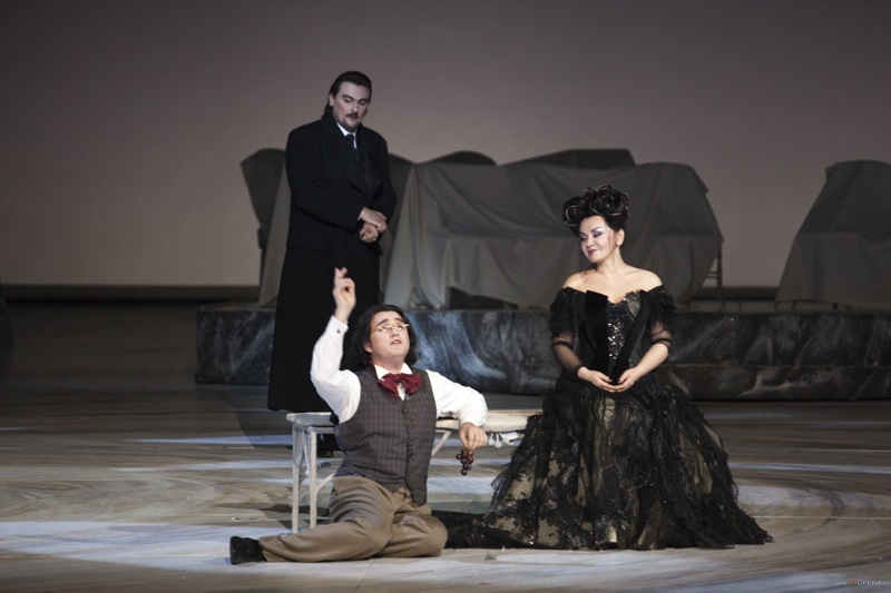 Разумеется, нет никакого вишнёвого сада в спектакле, поставленном на сцене Дворца Гарнье — современный оперный театр изменил бы себе, если бы на мировой премьере оперы французского композитора Филиппа Фенелона по пьесе Антона Павловича Чехова взору публики предстали бы белоснежные кущи фруктовых насаждений. Путь современной режиссуры и современной сценографии — всё что угодно, только подальше от того, что написано в тексте. Не дай Бог какой-нибудь конкретики, прямого узнавания — всё должно быть иносказательно, чрезвычайно метафорично, всё должно оставлять публику в недоумении и заставлять ее самостоятельно — каждого зрителя в силу его интеллектуальных способностей, образования и фантазии — разгадывать многочисленные ребусы постановщиков.