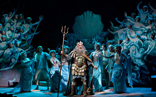 Партия Нептуна, сочиненная специально для Доминго, впервые за всю свою нескончаемую карьеру исполнившего божественную роль, прекрасно соответствует текущему вокальному состоянию певца, звучащему теперь уже настолько «как всегда», что на этом фоне любой оригинально свежий тембр кажется откровением. Однако американец Поль Эпплбай, исполнивший роль многострадального Деметриуса, даже с соответствующими оговорками таким откровением не стал: вываливающиеся открытые гласные и стружечная хрипотца, сопровождающая фиоритурные верха, не сильно компенсируются тембровой красотой и диапазонной необъятностью голоса певца.