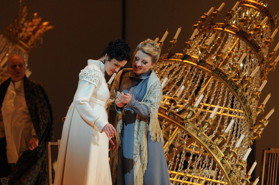 Я возвращался с премьеры прокофьевского шедевра в приподнятом настроении. И дело тут не только в патриотическом подъеме, охватившем публику в финале спектакля. Для меня не менее важным стало ощущение, что Опера с большой буквы всё еще жива среди вакханалии антихудожественного постмодернистского произвола и бесстыдства, охватившего многие мировые музыкальные театры в последние десятилетия. Не надо ходить далеко за примером, достаточно вспомнить прошлогоднюю скандальную кёльнскую постановку той же «Войны и мира» с бесконечным свальным грехом на сцене, садизмом и абсурдными купюрами, когда в спектакле не находится места даже для Кутузова (!). Впрочем, хватит о безобразном. Поговорим о прекрасном!