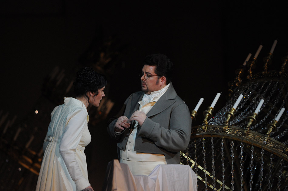 Прекрасной находкой театра стало приглашение на роль Пьера Безухова Николая Ерохина. Его воплощение образа — «попадание в десятку», дополненное благозвучностью голоса. Более сдержанно (хотя и не отрицательно) я бы оценил работу Дмитрия Зуева в партии князя Андрея. Тут, впрочем, дело скорее не в вокале как таковом, а в слишком юном облике героя, получившегося у артиста уж чересчур «чистым» и восторженным, лишенным многообразия красок человека, уже имеющего душевный опыт разочарований — для этого достаточно вспомнить слова героя в 1-й картине: «Весна, и любовь, и счастье — все это глупый, бессмысленный обман…».