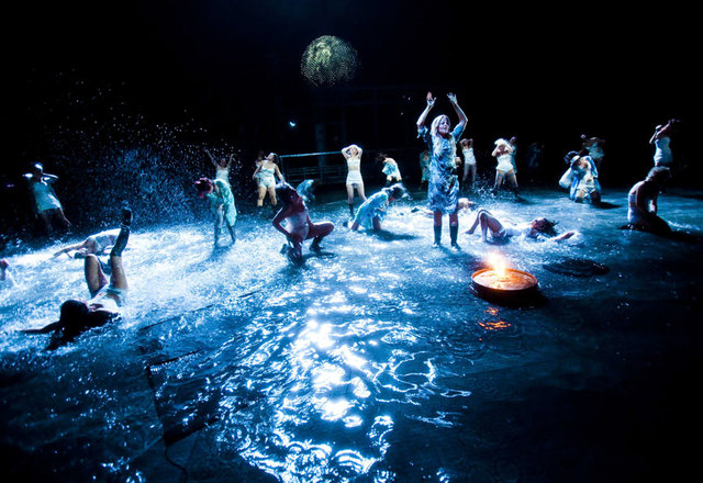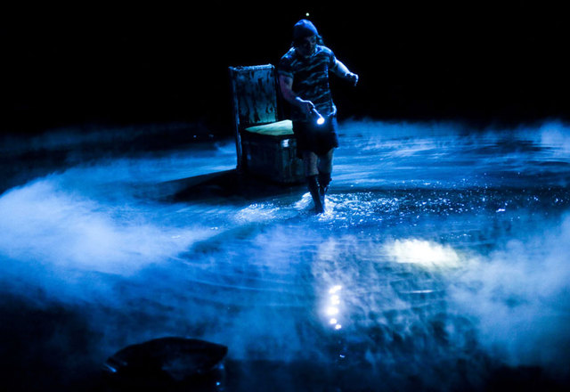 Отдельных слов заслуживает сценография спектакля. Пользуясь минимальными средствами, Борис Кудличка сумел создать на сцене зловещий и заброшенный свет, созвучный катастрофичности многих реальных событий последних лет. Раскрывая характер действия, семантика сценографии порождала новые смысловые акценты. Плавающие отдельные предметы, дрейфующая постройка с выбитыми стеклами – все несло на себе отпечаток обреченности. Ограничивая в определенной степени движения артистов, вода создала дополнительные эффекты и возможности в динамичном использовании элементов сценографии. Как, например, та же выплывающая платформа в начале спектакля.