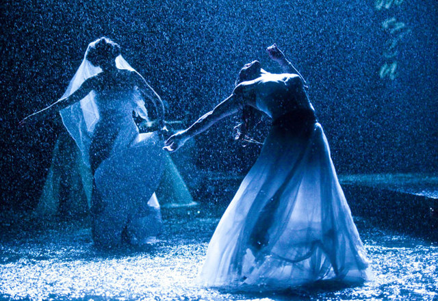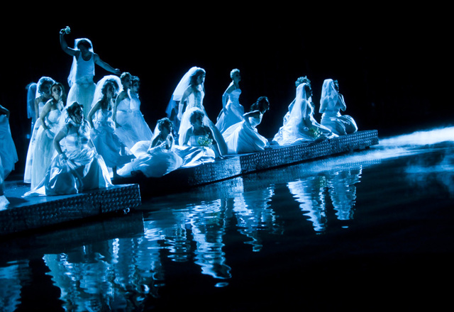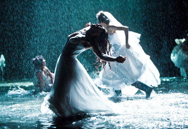Сильное впечатление произвело уже самое начало оперы, когда на фоне музыкальной увертюры на сцене развернулся своеобразный перформанс. Из глубины появилась фигура Женщины в белом подвенечном платье. Приближаясь на помосте, плывущем по воде, она выглядела как олицетворение невинной и чистой мечты. Начав двигаться под музыку, она спустилась в воду и погрузилась в стихию. Движения ее экзальтированного танца наполнялись все большей экспрессией и драматизмом. Кульминацией стало символическое освобождение – когда героиня избавилась от насквозь промокшего платья. Борьба со стихией-судьбой продолжалась до своеобразного искупления. Гармонично и оправданно выглядела в этой сцене нагота, которая стала художественным средством, отражающим как бы обнажение души. Этот образ, скрытый в туманной водяной мгле, был выразительным и своеобразно обобщил все последующие события. Актерская увертюра стала словно ответом режиссера на мысль Вагнера, который в своем программном пояснении к музыкальной увертюре писал, что «это не инструментально-симфоническое произведение, а сама легенда, послужившая основой оперы и данная в свободном пересказе».