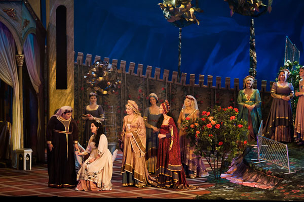 Трудно адекватно объяснить словами, что мне мешало в Иоланте Рягузовой. Если отвлечься от образа героини, то в самом вокале певицы я существенных технических изъянов не обнаружил, разве что по мелочам, о которых даже не стоит говорить. Так в чем же дело? Может быть чрезмерная вальяжность, как в пении, так и во внешнем облике? Пожалуй! Но не только это. Вот прозвучало ее первое ариозо «Отчего это прежде не знала», где в кантилене Рягузовой проскальзывала какая-то русская широкая распевность. Возможно здесь «собака зарыта». Чайковский, конечно, русский композитор, но в интонациях «Иоланты» никакого особого национального колорита нет, как нет и стилизации! Здесь скорее присутствует некий обобщенный образ условного европейского Средневековья, что, кстати, было неплохо передано сценографом Эрнстом Гейдебрехтом в визуальном облике спектакля, насыщенном цветами и архитектурными мотивами, напоминающими живопись выдающегося немецкого художника 15 века Стефана Лохнера (например, его знаменитые картины «Мадонна в беседке из роз», «Страшный суд»).