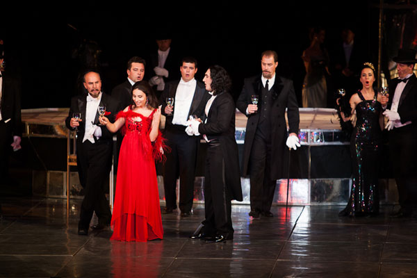 Театр в своей оперной эстетике всегда придерживался здорового традиционализма, доставшегося в наследство от советских времен. Впрочем, с приходом в 2010 году главного режиссера Михаила Панджавидзе облик спектаклей стал меняться, появились эксцентричный «Севильский цирюльник», эффектный продвинутый «Набукко» с использованием компьютерной графики и др. Всего репертуар НАБТа включает более 30 опер (это больше чем в московском Большом театре), в числе которых классические и современные опусы. Как уже отмечалось в первой части нашего обзора, для представления на форуме была выбрана наиболее популярная оперная классика. Полагаю, что именно при таком репертуарном подходе можно было эффективнее всего задействовать наиболее широкий круг стран-участниц фестиваля, ибо оперы эти идут, практически, повсюду. Разумеется, организаторам хотелось сделать высоким исполнительский уровень форума, поэтому была проведена тщательная работа по подбору солистов, многие из которых уже достаточно известны и имеют насыщенные творческие графики. В целом, все это оправдало себя, и мы услышали ряд ярких выступлений. Очевидных неудач удалось, практически, избежать, а те или иные претензии, которые можно предъявить отдельным исполнителям, относятся, в основном, не к их профессионализму — его планка за незначительными исключениями была достаточно хорошего уровня, — а к художественным критериям более тонкого свойства, стилистическим нюансам интерпретации…