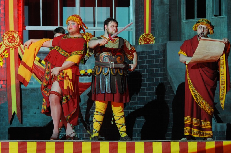 Остальные партии в вокальном отношении менее сложны, хотя интонационно достаточно разнообразны. Мария Пахарь (Елена) порадовала ясным тембром и хорошей культурой звука. В театре ее потенциал явно используют не до конца (это к слову). Интонационное богатство и раскованность в хорошем смысле этого слова обнаружил Антон Зараев (Основа/Боттом). Замечательное комическое дарование проявил Сергей Балашов (Флейта). Его виртуозная «системная» фальшь, заложенная самим композитором (неоднократный ми-бекар в ми-бемоль мажоре) была впечатляющей. У Артёма Сафронова (Лизандр) сравнительно небольшой тенор, но использует певец его грамотно. Дмитрий Зуев (Деметрий) оказался в каком-то смысле заложником своей роли-мачо, внешний облик которой «заглушал» вокал. Очень трудная миссия выпала на долю Романа Улыбина (Тезей). В качестве его пения кто бы сомневался! Но большую часть действия немотствовать и при этом не оказаться скучным — это, знаете ли, подвиг! Хорошее ансамблевое мастерство продемонстрировала четверка влюбленных в квартете «умиротворения» из 3-го акта, написанном в виде своеобразного канона – очень красивого. Здесь хроматизмы, ранее присущие партиям этих персонажей (имеющих, кстати, общий лейтмотив) трансформируются диатонику, разрешающуюся мажорными трезвучиями.