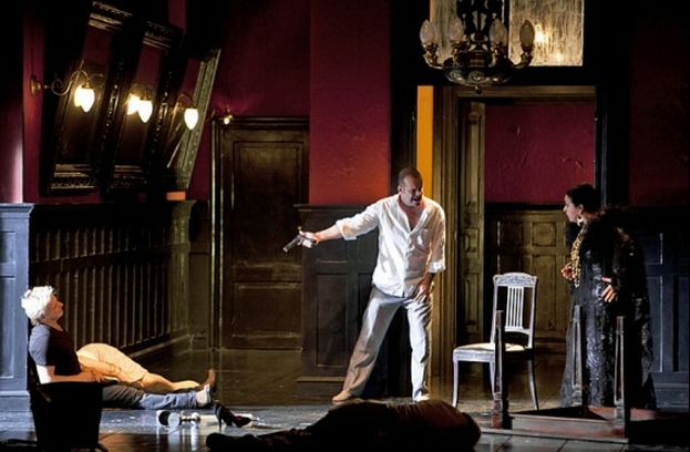 Верди – на редкость здоровый по духу композитор. Гуманист высшей пробы, у которого, не смотря на трагические финалы абсолютного большинства (24 из 26) опер всегда в финале есть Свет, есть высшая Правда, ради которой гибнут лучшие герои – тенора и сопрано, реже баритоны и басы. И зрительские слёзы катарсиса после последнего аккорда уместны и полезны. Подозреваю, что слово «катарсис» не состоит в лексиконе г-на Чернякова в принципе. Какова же основная идея этого «Трубадура» — не играйте взрослые дяди и тёти в сюжетно-ролевые игры, а то можно заиграться и пострелять друг друга? После финального занавеса этого спектакля хочется вымыться с мылом или тяжко по-русски напиться. Он крадёт у нас последний островок Надежды в безумном современном мире! Он этого хотел, наш новоиспечённый «гений», названный так спорно и сгоряча дирижёром Кентом Нагано?