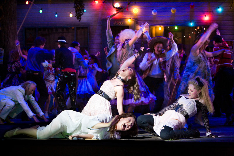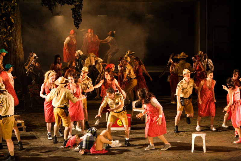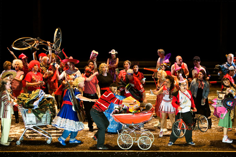 Теперь же, взглянув на афишу или увидев фото с премьеры, ни за что не понять без подписи, о чём идёт речь. Полчища размалёванных лиц, с пирсингом, татуировками, в сером, чёрном и мятом, полуодетые или совершенно голые, с пулемётами, шприцами, плётками... то в мундирах со свастикой, то в рваных футболках с микки-маусом, замершие в непристойных позах, двусмысленных положениях – все они совершенно неопознаваемы.