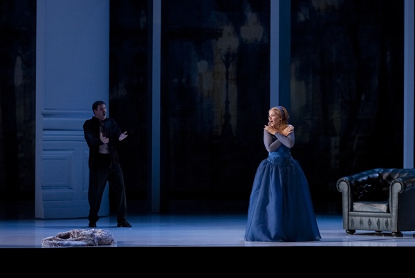 «Арабелла» идёт на сцене Оперы Бастилии, что уже само по себе — не слишком удачное решение: избыточный декор зала Дворца Гарнье ей бы подошёл куда более, да и старая сцена поменьше, на огромном же «стадионе» Бастилии многие тонкости взаимоотношений героев, юмор и пряные музыкальные красоты явно теряются. Это, к слову, одна из больших проблем Парижской оперы и её менеджмента – неумение верно распределить репертуар по двум площадкам: с ситуациями, когда что-то более помпезно-циклопическое идёт в Гарнье, а интимно-камерное в Бастилии, приходится сталкиваться постоянно. Понятно, что и площадка Гарнье не мала сама по себе, однако всё-таки исторический антураж зала даёт всегда больше ощущения именно театра, в то время как в суперкомфортной Бастилии всегда есть немножко впечатление, что ты находишься на огромном плацу, если не на аэродроме.